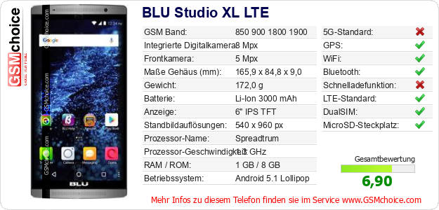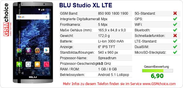 Daten des Mobiltelefons BLU Studio XL LTE auf Ihrer Seite