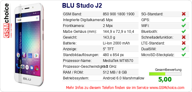 Hast du eigene Webseite? Willst du die Informationen über Standarddaten des Handys BLU Studo J2 irgendwo veröffentlichen? Das ist sehr einfach. Du kannst das Bild herunterladen oder kopieren und auf der Webseite folgenden Code hinzufügen:Das Einfügen von diesem Code verursacht das Anzeigen von dem folgenden Bild: