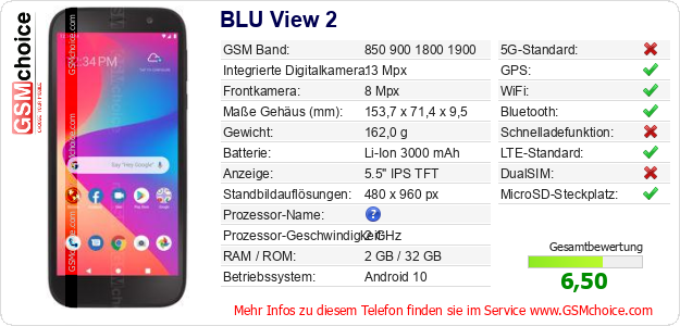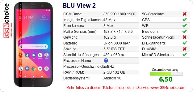 Hast du eigene Webseite? Willst du die Informationen über Standarddaten des Handys BLU View 2 irgendwo veröffentlichen? Das ist sehr einfach. Du kannst das Bild herunterladen oder kopieren und auf der Webseite folgenden Code hinzufügen:Das Einfügen von diesem Code verursacht das Anzeigen von dem folgenden Bild: