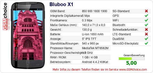 Hast du eigene Webseite? Willst du die Informationen über Standarddaten des Handys Bluboo X1 irgendwo veröffentlichen? Das ist sehr einfach. Du kannst das Bild herunterladen oder kopieren und auf der Webseite folgenden Code hinzufügen:Das Einfügen von diesem Code verursacht das Anzeigen von dem folgenden Bild: