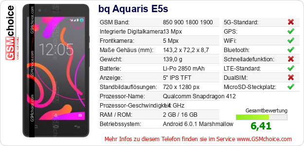 Daten des Mobiltelefons bq Aquaris E5s auf Ihrer Seite