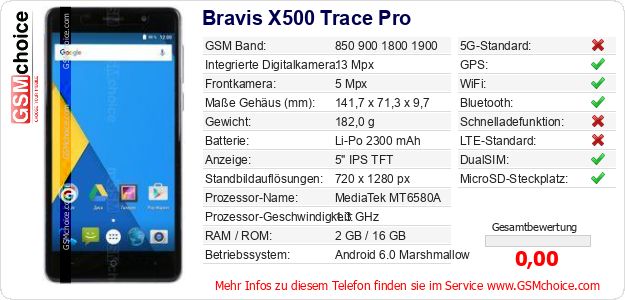 Daten des Mobiltelefons Bravis X500 Trace Pro auf Ihrer Seite