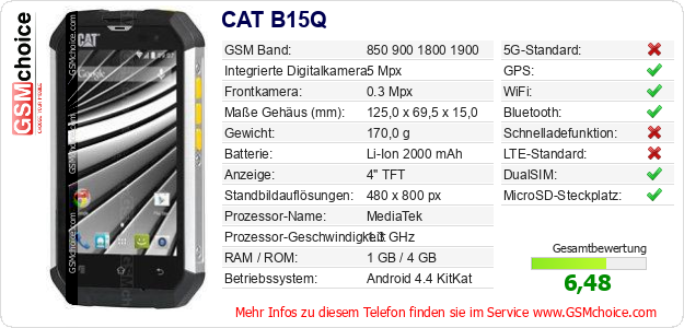 Hast du eigene Webseite? Willst du die Informationen über Standarddaten des Handys CAT B15Q irgendwo veröffentlichen? Das ist sehr einfach. Du kannst das Bild herunterladen oder kopieren und auf der Webseite folgenden Code hinzufügen:Das Einfügen von diesem Code verursacht das Anzeigen von dem folgenden Bild: