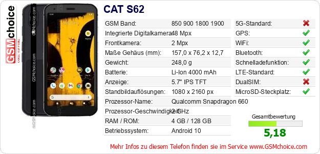 Hast du eigene Webseite? Willst du die Informationen über Standarddaten des Handys CAT S62 irgendwo veröffentlichen? Das ist sehr einfach. Du kannst das Bild herunterladen oder kopieren und auf der Webseite folgenden Code hinzufügen:Das Einfügen von diesem Code verursacht das Anzeigen von dem folgenden Bild: