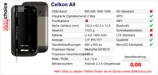 Hast du eigene Webseite? Willst du die Informationen über Standarddaten des Handys Celkon A9 irgendwo veröffentlichen? Das ist sehr einfach. Du kannst das Bild herunterladen oder kopieren und auf der Webseite folgenden Code hinzufügen:Das Einfügen von diesem Code verursacht das Anzeigen von dem folgenden Bild: