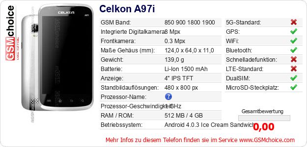 Daten des Mobiltelefons Celkon A97i auf Ihrer Seite