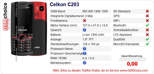 Hast du eigene Webseite? Willst du die Informationen über Standarddaten des Handys Celkon C203 irgendwo veröffentlichen? Das ist sehr einfach. Du kannst das Bild herunterladen oder kopieren und auf der Webseite folgenden Code hinzufügen:Das Einfügen von diesem Code verursacht das Anzeigen von dem folgenden Bild: