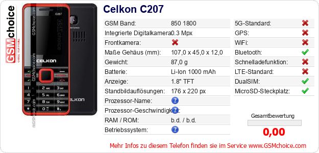 Hast du eigene Webseite? Willst du die Informationen über Standarddaten des Handys Celkon C207 irgendwo veröffentlichen? Das ist sehr einfach. Du kannst das Bild herunterladen oder kopieren und auf der Webseite folgenden Code hinzufügen:Das Einfügen von diesem Code verursacht das Anzeigen von dem folgenden Bild: