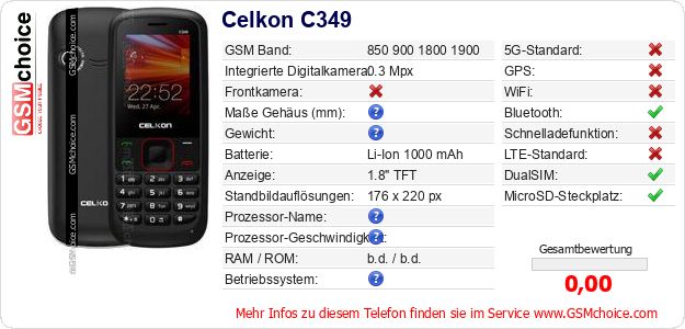 Hast du eigene Webseite? Willst du die Informationen über Standarddaten des Handys Celkon C349 irgendwo veröffentlichen? Das ist sehr einfach. Du kannst das Bild herunterladen oder kopieren und auf der Webseite folgenden Code hinzufügen:Das Einfügen von diesem Code verursacht das Anzeigen von dem folgenden Bild: