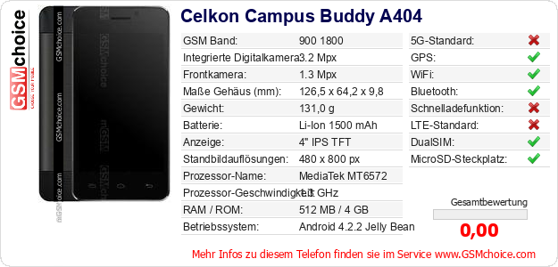 Daten des Mobiltelefons Celkon Campus Buddy A404 auf Ihrer Seite
