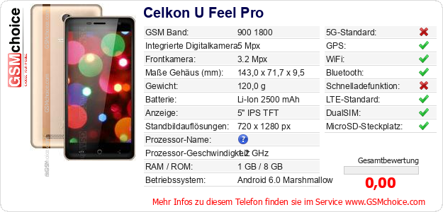 Hast du eigene Webseite? Willst du die Informationen über Standarddaten des Handys Celkon U Feel Pro irgendwo veröffentlichen? Das ist sehr einfach. Du kannst das Bild herunterladen oder kopieren und auf der Webseite folgenden Code hinzufügen:Das Einfügen von diesem Code verursacht das Anzeigen von dem folgenden Bild:
