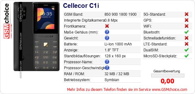 Hast du eigene Webseite? Willst du die Informationen über Standarddaten des Handys Cellecor C1i irgendwo veröffentlichen? Das ist sehr einfach. Du kannst das Bild herunterladen oder kopieren und auf der Webseite folgenden Code hinzufügen:Das Einfügen von diesem Code verursacht das Anzeigen von dem folgenden Bild: