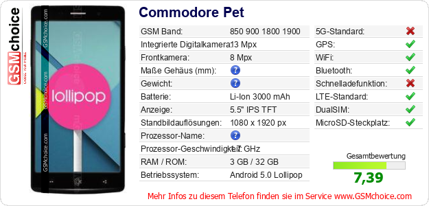 Hast du eigene Webseite? Willst du die Informationen über Standarddaten des Handys Commodore Pet irgendwo veröffentlichen? Das ist sehr einfach. Du kannst das Bild herunterladen oder kopieren und auf der Webseite folgenden Code hinzufügen:Das Einfügen von diesem Code verursacht das Anzeigen von dem folgenden Bild: