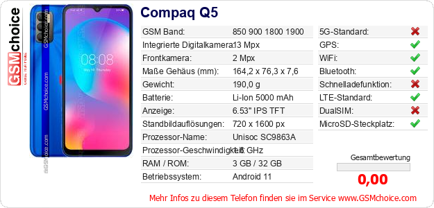 Daten des Mobiltelefons Compaq Q5 auf Ihrer Seite