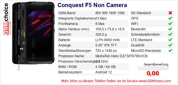 Daten des Mobiltelefons Conquest F5 Non Camera auf Ihrer Seite
