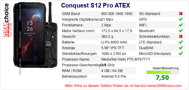 Daten des Mobiltelefons Conquest S12 Pro ATEX auf Ihrer Seite