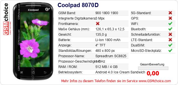 Daten des Mobiltelefons Coolpad 8070D auf Ihrer Seite