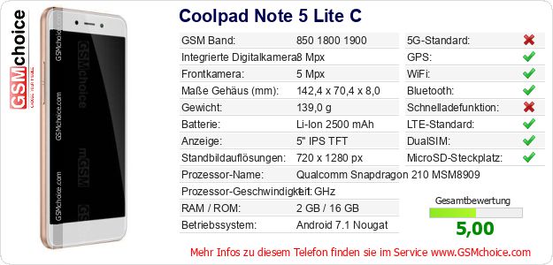 Daten des Mobiltelefons Coolpad Note 5 Lite C auf Ihrer Seite
