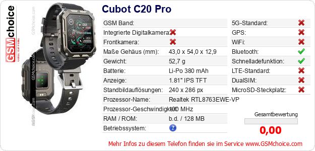 Hast du eigene Webseite? Willst du die Informationen über Standarddaten des Handys Cubot C20 Pro irgendwo veröffentlichen? Das ist sehr einfach. Du kannst das Bild herunterladen oder kopieren und auf der Webseite folgenden Code hinzufügen:Das Einfügen von diesem Code verursacht das Anzeigen von dem folgenden Bild: