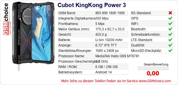 Daten des Mobiltelefons Cubot KingKong Power 3 auf Ihrer Seite