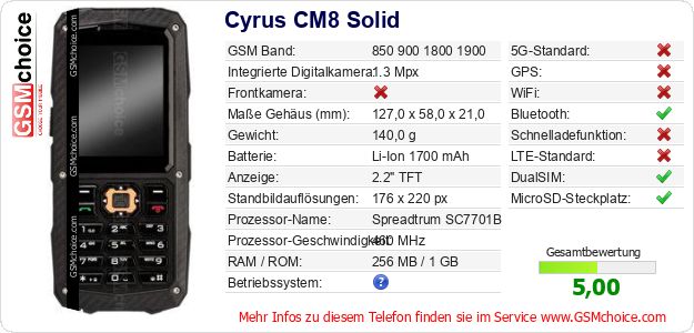 Daten des Mobiltelefons Cyrus CM8 Solid auf Ihrer Seite