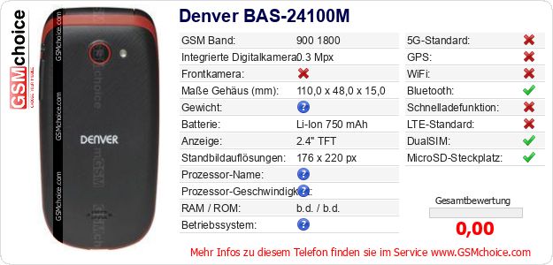 Daten des Mobiltelefons Denver BAS-24100M auf Ihrer Seite