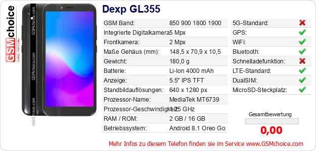 Daten des Mobiltelefons Dexp GL355 auf Ihrer Seite