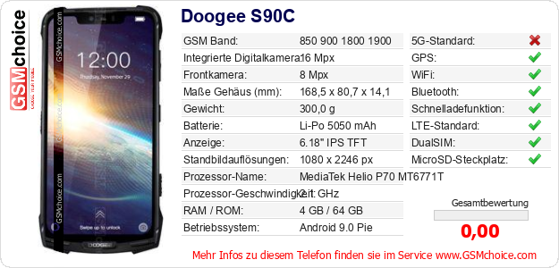 Hast du eigene Webseite? Willst du die Informationen über Standarddaten des Handys Doogee S90C irgendwo veröffentlichen? Das ist sehr einfach. Du kannst das Bild herunterladen oder kopieren und auf der Webseite folgenden Code hinzufügen:Das Einfügen von diesem Code verursacht das Anzeigen von dem folgenden Bild: