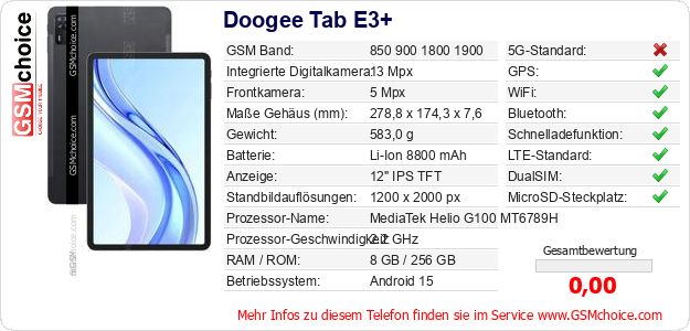 Daten des Mobiltelefons Doogee Tab E3+ auf Ihrer Seite