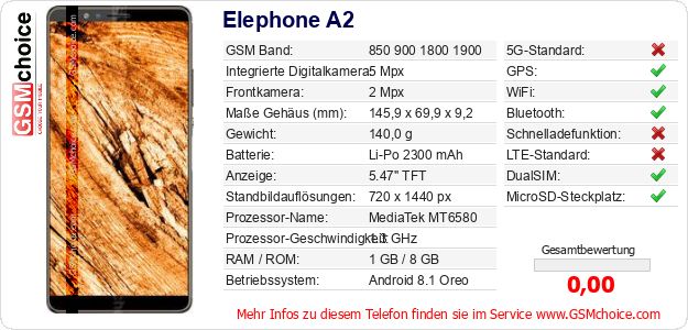 Daten des Mobiltelefons Elephone A2 auf Ihrer Seite