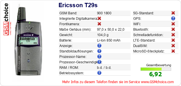Daten des Mobiltelefons Ericsson T29s auf Ihrer Seite