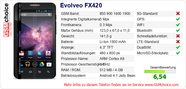 Daten des Mobiltelefons Evolveo FX420 auf Ihrer Seite