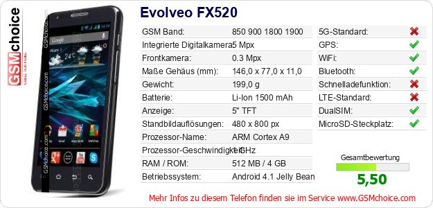 Daten des Mobiltelefons Evolveo FX520 auf Ihrer Seite