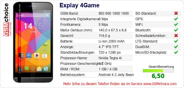 Hast du eigene Webseite? Willst du die Informationen über Standarddaten des Handys Explay 4Game irgendwo veröffentlichen? Das ist sehr einfach. Du kannst das Bild herunterladen oder kopieren und auf der Webseite folgenden Code hinzufügen:Das Einfügen von diesem Code verursacht das Anzeigen von dem folgenden Bild: