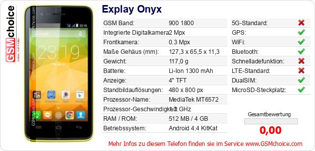 Hast du eigene Webseite? Willst du die Informationen über Standarddaten des Handys Explay Onyx irgendwo veröffentlichen? Das ist sehr einfach. Du kannst das Bild herunterladen oder kopieren und auf der Webseite folgenden Code hinzufügen:Das Einfügen von diesem Code verursacht das Anzeigen von dem folgenden Bild: