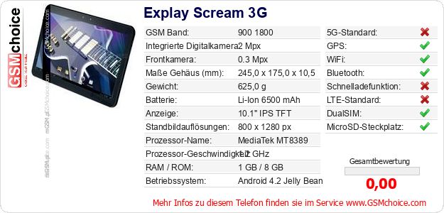 Daten des Mobiltelefons Explay Scream 3G auf Ihrer Seite