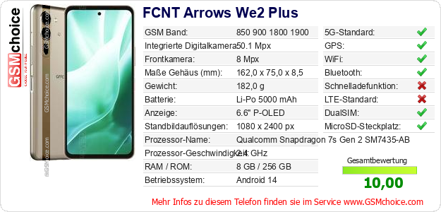 Daten des Mobiltelefons FCNT Arrows We2 Plus auf Ihrer Seite