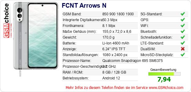 Hast du eigene Webseite? Willst du die Informationen über Standarddaten des Handys FCNT Arrows N irgendwo veröffentlichen? Das ist sehr einfach. Du kannst das Bild herunterladen oder kopieren und auf der Webseite folgenden Code hinzufügen:Das Einfügen von diesem Code verursacht das Anzeigen von dem folgenden Bild: