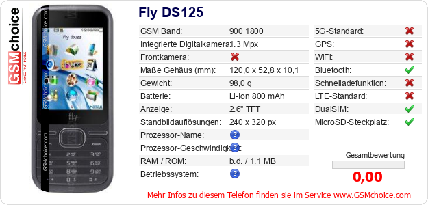 Daten des Mobiltelefons Fly DS125 auf Ihrer Seite