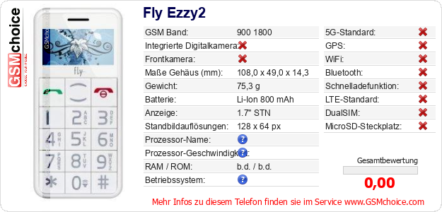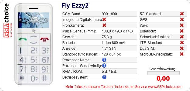 Hast du eigene Webseite? Willst du die Informationen über Standarddaten des Handys Fly Ezzy2 irgendwo veröffentlichen? Das ist sehr einfach. Du kannst das Bild herunterladen oder kopieren und auf der Webseite folgenden Code hinzufügen:Das Einfügen von diesem Code verursacht das Anzeigen von dem folgenden Bild: