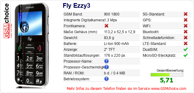 Hast du eigene Webseite? Willst du die Informationen über Standarddaten des Handys Fly Ezzy3 irgendwo veröffentlichen? Das ist sehr einfach. Du kannst das Bild herunterladen oder kopieren und auf der Webseite folgenden Code hinzufügen:Das Einfügen von diesem Code verursacht das Anzeigen von dem folgenden Bild: