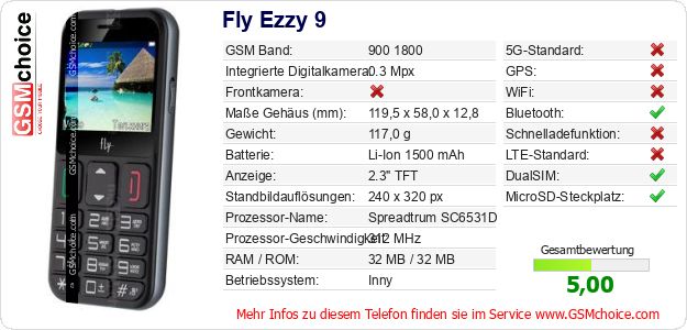 Hast du eigene Webseite? Willst du die Informationen über Standarddaten des Handys Fly Ezzy 9 irgendwo veröffentlichen? Das ist sehr einfach. Du kannst das Bild herunterladen oder kopieren und auf der Webseite folgenden Code hinzufügen:Das Einfügen von diesem Code verursacht das Anzeigen von dem folgenden Bild: