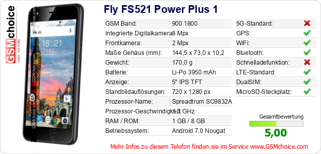 Daten des Mobiltelefons Fly FS521 Power Plus 1 auf Ihrer Seite