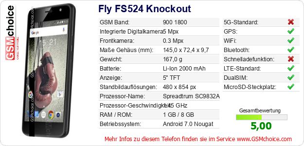 Hast du eigene Webseite? Willst du die Informationen über Standarddaten des Handys Fly FS524 Knockout irgendwo veröffentlichen? Das ist sehr einfach. Du kannst das Bild herunterladen oder kopieren und auf der Webseite folgenden Code hinzufügen:Das Einfügen von diesem Code verursacht das Anzeigen von dem folgenden Bild: