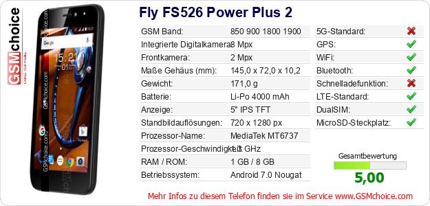 Daten des Mobiltelefons Fly FS526 Power Plus 2 auf Ihrer Seite