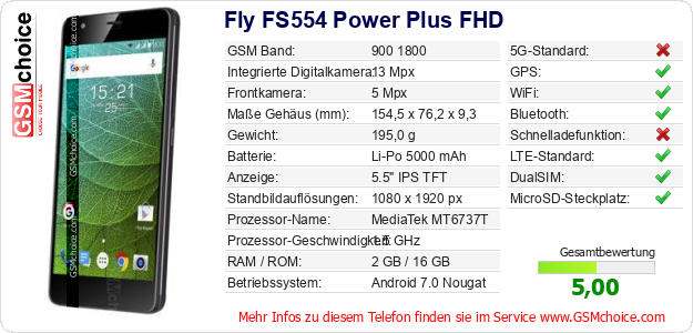Hast du eigene Webseite? Willst du die Informationen über Standarddaten des Handys Fly FS554 Power Plus FHD irgendwo veröffentlichen? Das ist sehr einfach. Du kannst das Bild herunterladen oder kopieren und auf der Webseite folgenden Code hinzufügen:Das Einfügen von diesem Code verursacht das Anzeigen von dem folgenden Bild: