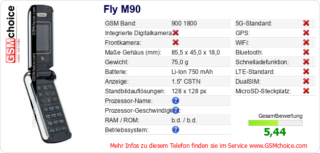 Hast du eigene Webseite? Willst du die Informationen über Standarddaten des Handys Fly M90 irgendwo veröffentlichen? Das ist sehr einfach. Du kannst das Bild herunterladen oder kopieren und auf der Webseite folgenden Code hinzufügen:Das Einfügen von diesem Code verursacht das Anzeigen von dem folgenden Bild: