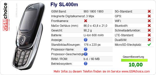 Daten des Mobiltelefons Fly SL400m auf Ihrer Seite