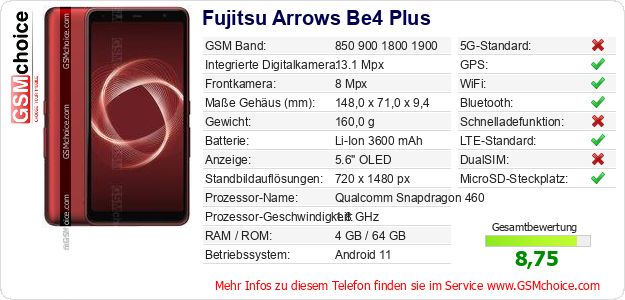 Daten des Mobiltelefons Fujitsu Arrows Be4 Plus auf Ihrer Seite