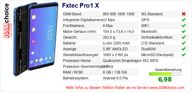 Hast du eigene Webseite? Willst du die Informationen über Standarddaten des Handys Fxtec Pro1 X irgendwo veröffentlichen? Das ist sehr einfach. Du kannst das Bild herunterladen oder kopieren und auf der Webseite folgenden Code hinzufügen:Das Einfügen von diesem Code verursacht das Anzeigen von dem folgenden Bild: